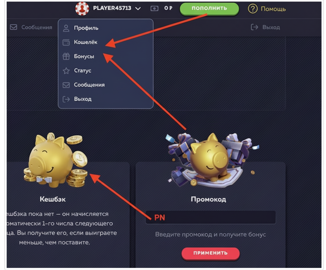 Если игрок за месяц проигрывает больше, чем выигрывает, ему начисляется кэшбэк 10%. Расчет производится исходя из суммы чистых расходов за календарный период, исключая бонусные средства.